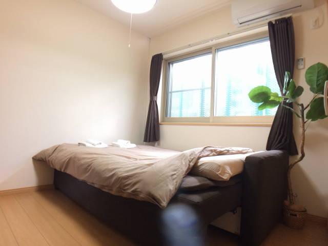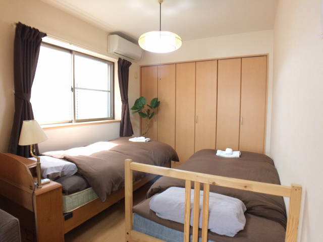 山手線の新大久保駅から徒歩でたったの3分、コンクリート打ちっぱなしのお洒落なマンションの1階です。新宿、渋谷、池袋などの都内の主要駅まで山手線1本で行く事ができますので、お仕事やショッピングに大変便利です。1つ目のベッドルームにはシングルサイズのベッドが2台、2つ目のベッドルームにはダブルベッドと折り畳み式シングルベッドが1台づつご使用になれますのでご家族でのご入居にぴったりです。キッチンには3口のガスレンジ、冷蔵庫、電子レンジ、炊飯器、トースター、電子ケトル、食器洗い機などの設備が充実しています。 近くにはアジア各国のレストランやお店が多くありますので、食事や買い物をお楽しみいただけます。