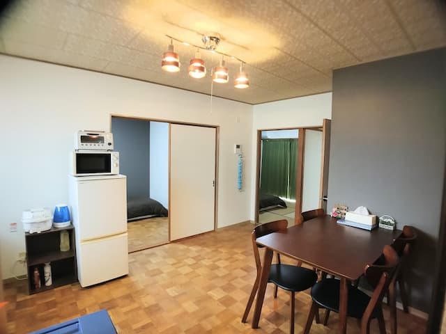 鳴門駅から徒歩でたったの8分、鉄筋コンクリートタイル張りマンションの3階です。和室が2部屋、洋室1部屋で3名様分のマットレスをご使用になれますのでご家族での入居にぴったりです。キッチンには2口のガスレンジ、冷蔵庫、電子レンジ、炊飯器、トースター、電子ケトルなどの設備が充実しています。 周辺には大塚国際美術館、鳴門の渦潮、四国88箇所の巡礼の出発点である霊山寺、大谷焼の窯元、などもあり観光の拠点としてもご利用いただけます。駐車場もありますのでお車での移動にも便利です。